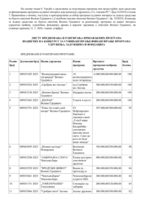 Листа вредновања и рангирања пријављених програма поднетих на конкурсу за суфинансирањефинансирање програма удружења, задужбина и фондација