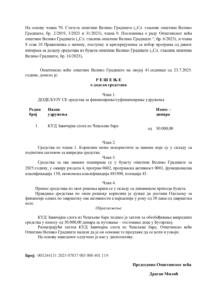 11. Решење о додели средстава за финансирање суфинансирање удружења КУД Завичајна слога из Чешљеве Баре