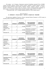 2. Одлука о преносу средстава у Текућу буџетску резерву, на основу Обавештења Одељења за финансије Општинске управе општине Велико Градиште,