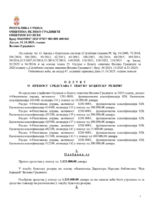 18. Одлука о преносу средстава у текућу буџетску резерву – Народна библиотека – разно