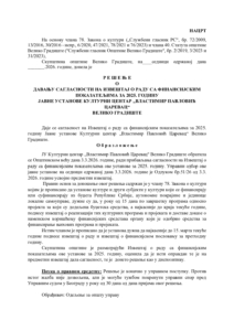 19. Нацрт Решења о давању сагласности на Извештај о раду за 2025. годину ЈУ КЦ