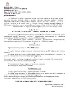 20. Одлука о преносу средстава у текућу буџетску резерву – ПУ Мајски цвет – разно
