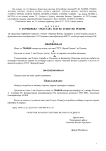 33. Одлука о коришћењу средстава Текуће буџетске резерве, на основу Захтева СТСУ „Борац Кумане“, (спортска опрема),