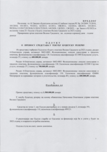 22. Предлог Одлуке о преносу средстава у Текућу буџетку резерву (Општинска управа),