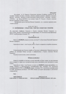 5. Предлог Одлуке о коришћењу средстава текуће буџетске резерве ЈУ Културни центар „Властимир Павловић Царевац“ (пакетићи и репрезентација),