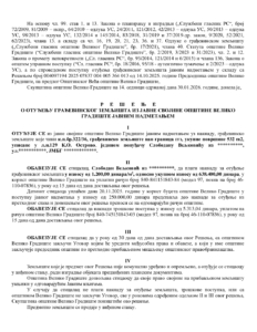 33. Решење о отуђењу грађевинског земљишта из јавне својине општине Велико Градиште јавним надметањем (Слободан Вељковић, к.п.бр.322/36 к.о.Острово),