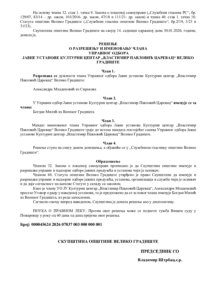 38. Решење о разрешењу и именовању члана Управног одбора ЈУ Културни центар „Властимр Павловић Царевац“ из Великог Градишта,